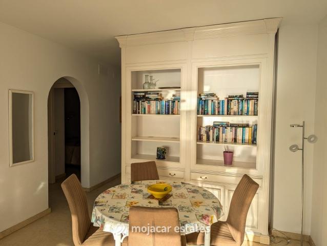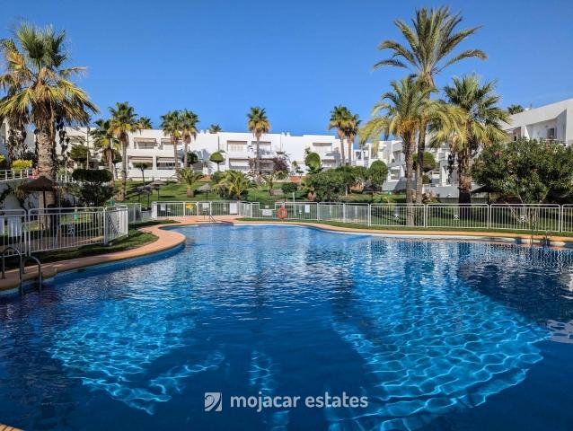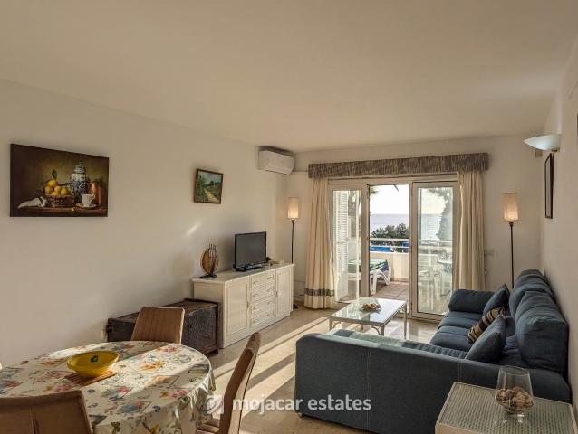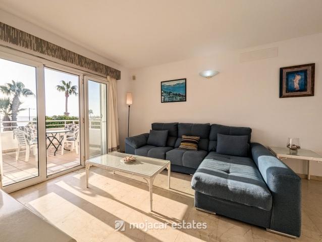 Precioso apartamento en planta alta para 4 personas en primera línea de mar en complejo residencial con piscina y plaza de garaje junto a centro comercial en Mojácar Playa.