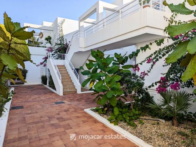 Parque Residencial es una urbanización de primera línea junto al Centro Comercial en Mojácar Playa. Hay una puerta de acceso (Nº9) en la calle Lucerna, una vez que se accede a la comunidad encontrará la escalera externa que conduce a la puerta principal del apartamento.